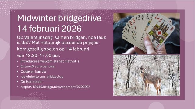 Opgeven kan via • de clubsite van bridgeclub De Harmonie: