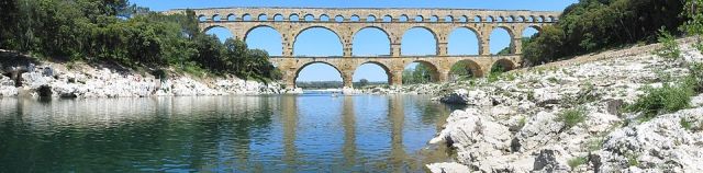 Wie wel eens in de buurt van Nîmes geweest is kan het haast niet gemist hebben: de Pont du Gard. De brug annex aquaduct over de rivier de Gard of Gardon is nog steeds één van de meest imposante bouwwerken die ons uit de oudheid zijn overgeleverd. Het is haast niet voor te stellen hoe met relatief eenvoudige middelen zoiets groots gebouwd is, en hoe precies Romeinse ingenieurs geweest zijn in de berekening van het traject, waarover water van een bron bij Uzès naar de grote stad Nîmes werd vervoerd, over een afstand van 50 kilometer en met een verval van slechts 11,5 (!) meter.