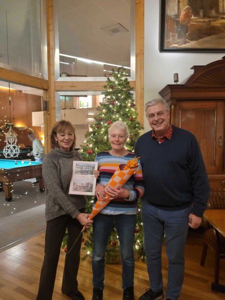 Wil Schlebaum is het 700ste lid! Op de foto wordt zij gefeliciteerd door de voorzitter en secretaris.